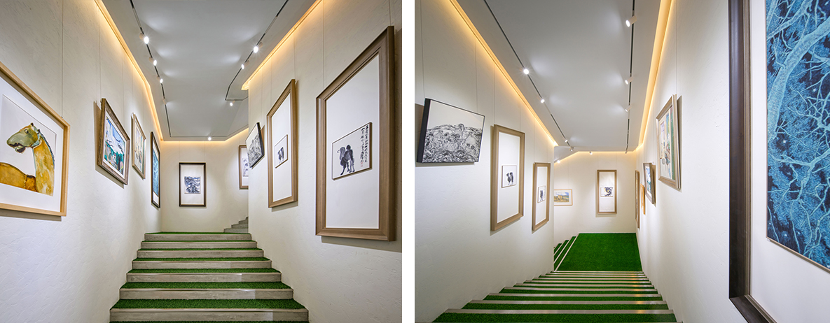 From delicate watercolors to expressive ink studies, the stairwell at Delson Golf is transformed into a curated ascent—showcasing original works by rising Chinese artists. Without ornamental distractions, the space invites a slower pace, where art becomes the language of movement.