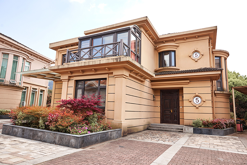 启新宁波度假村依山而建,背倚青翠叠嶂,面朝烟波浩渺的东钱湖。度假村共规划有 31栋景观别墅,坐落于绿茵环抱之中,尽享 一侧高尔夫球场风光,另一侧湖光山色。项目总占地面积约28000 平方米,总使用面积约 13000 平方米。