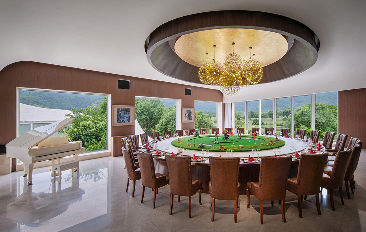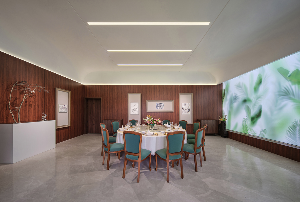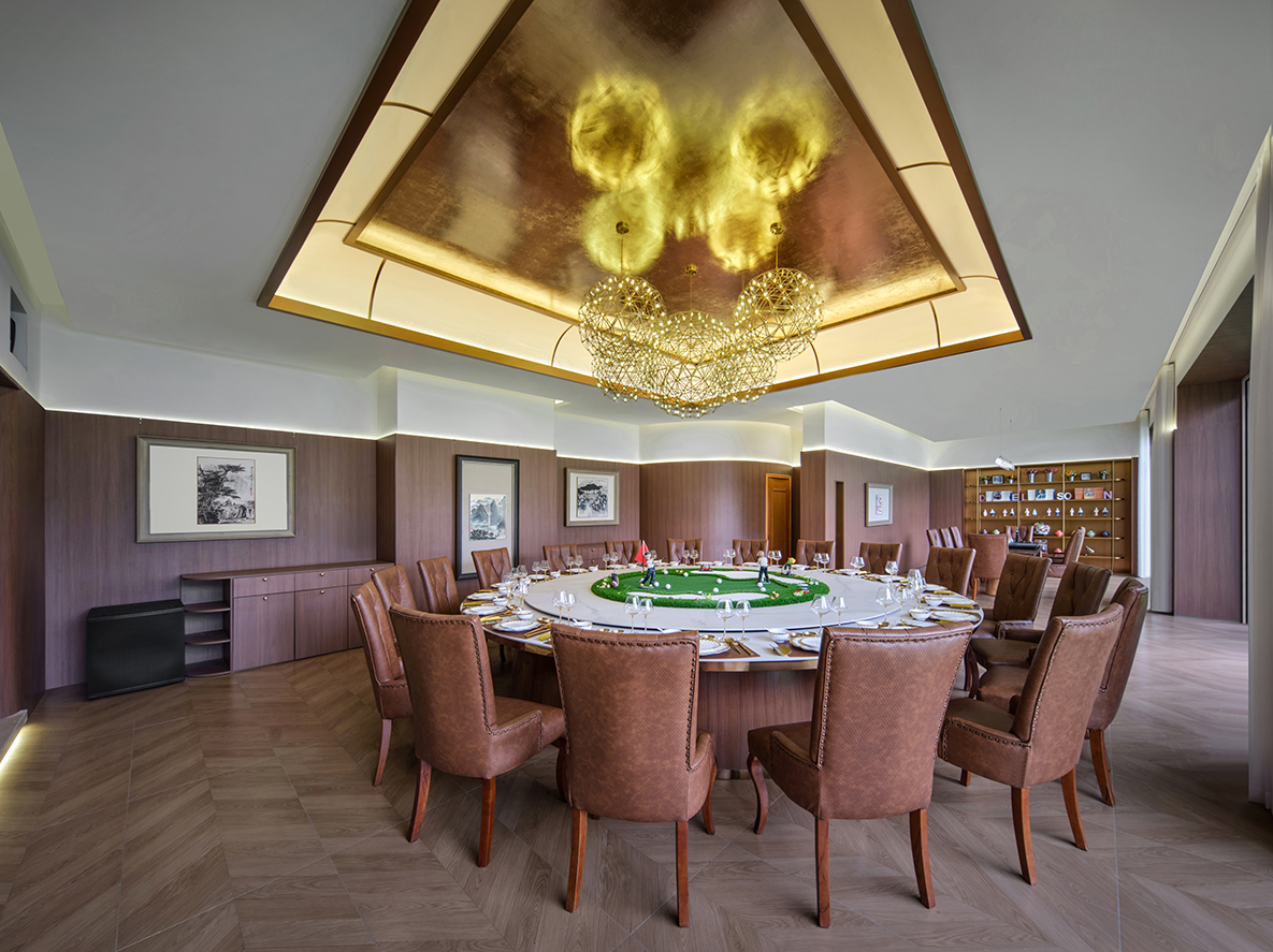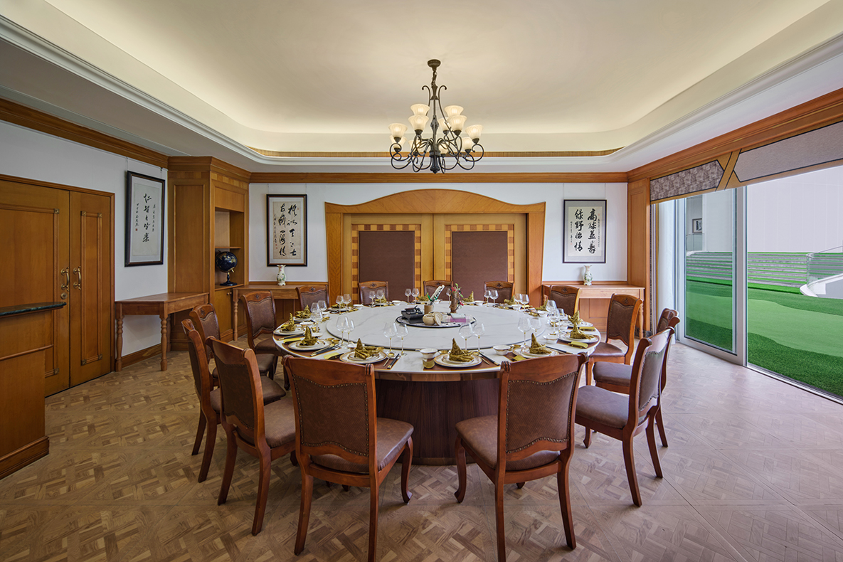 Conveniently located adjacent to the second-floor golf practice area, the Qianhu Private Dinning offers direct access to a putting green just outside, making it a perfect venue that blends business and leisure in a refined setting.