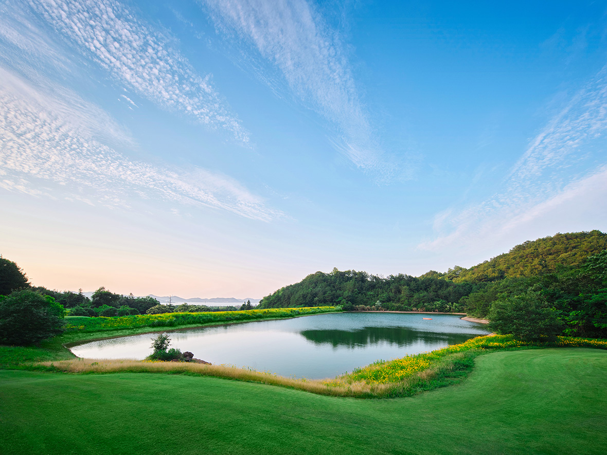左狗腿挑战洞 | 距离:444码(黄Tee) / 315码(蓝Tee) / 246码(白Tee) / 234码(红Tee)