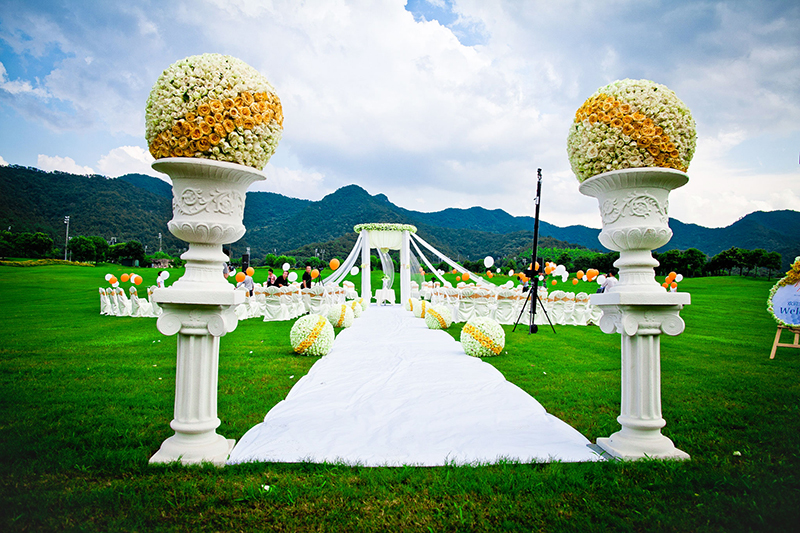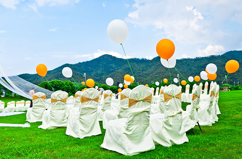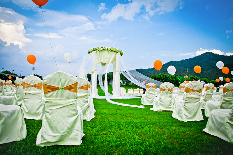 启新高尔夫,坐拥青山怀抱,占地1800亩,是宁波首家高尔夫俱乐部。天然山景为幕,绿意盎然,蓝天白云映衬,让婚礼回归纯粹本真,为新人与宾客带来难忘的视觉与心灵享受。